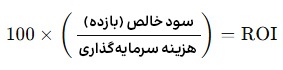 فرمول محاسبه بازگشت سرمایه (ROI) به صورت زیر است: